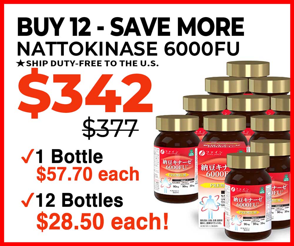 Nattokinase 6000FU – 12 Bottles -Shipping duty-free to the U.S.