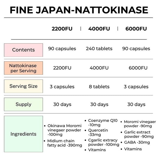 Experience the cardiovascular benefits of Nattokinase 4000 FU, 6000 FU, and Okinawa Moromi blend. These premium supplements, made in Japan, are designed to support heart health and overall wellness.
