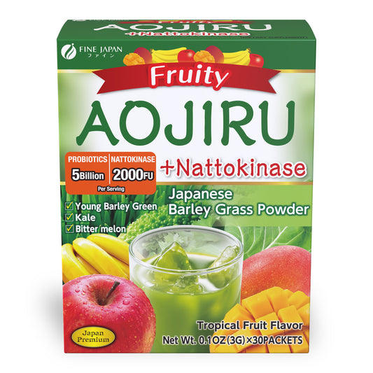 Japanese Green Aojiru Barley Grass Powder & Natto Kinase with fruits (30 Sticks) Set of 6 by FINE JAPAN