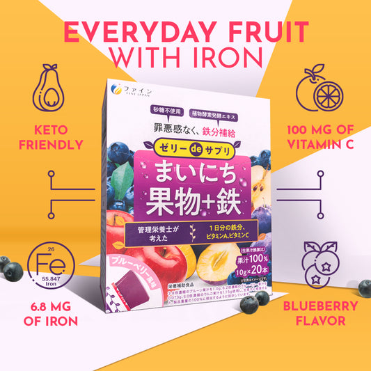 Iron & Vitamin Jelly Supplement - Sugar-Free Fruit Flavor (20 Sticks) by FINE JAPAN