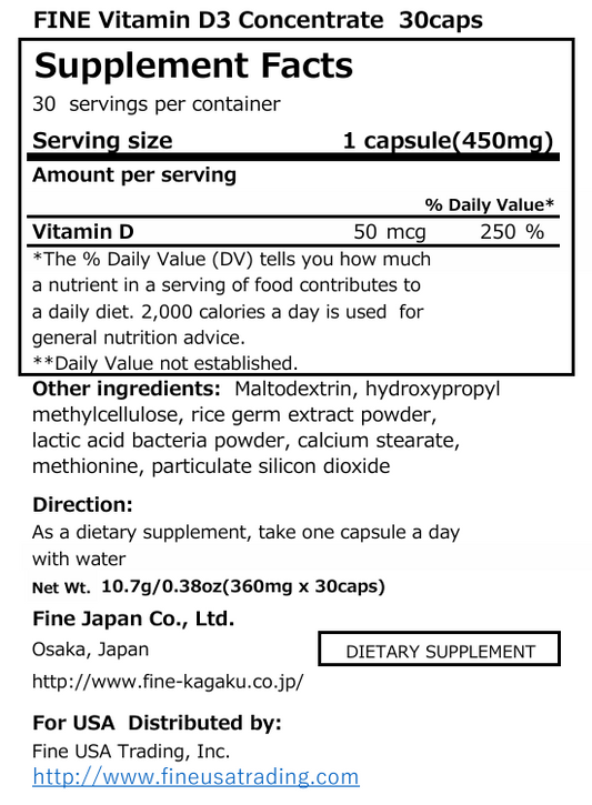 High-Concentration Vitamin D3 – Immune & Bone Support, 30 Tablets (360mg) by FINE JAPAN