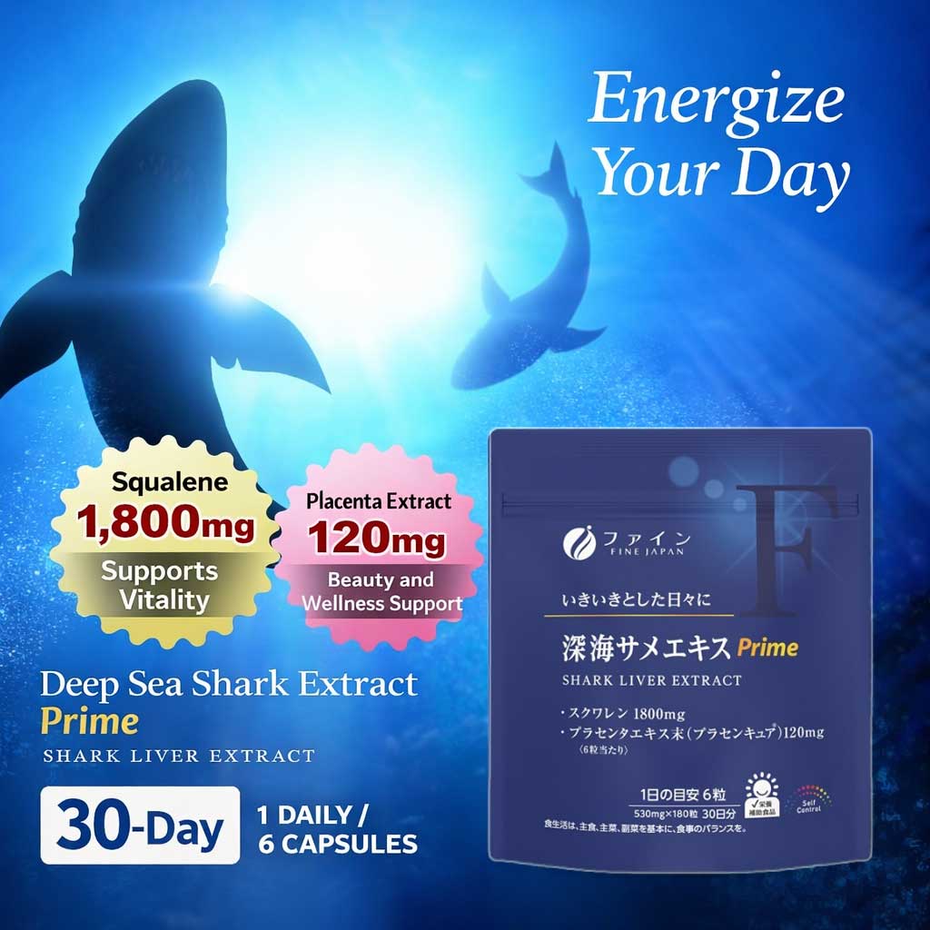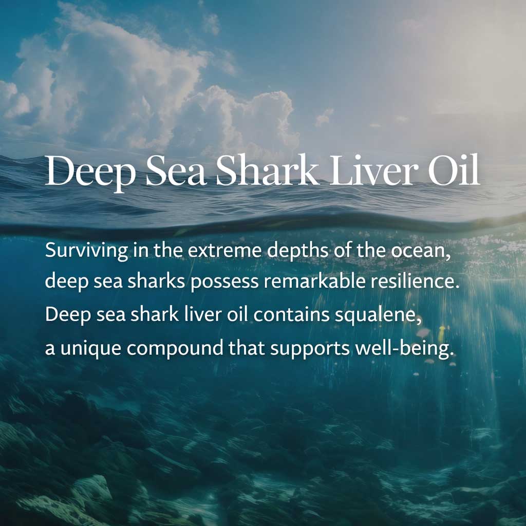 Deep-sea sharks thrive in harsh environments hundreds of meters below the ocean’s surface. This supplement delivers pure squalene extracted from deep-sea shark liver oil, combined with placenta extract and carefully selected ingredients. Support your daily energy and vitality naturally.