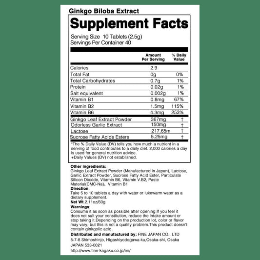 Ginkgo Biloba Plus Extract – Memory Support Supplement, 80-Day Supply (400 Tablets) by FINE JAPAN