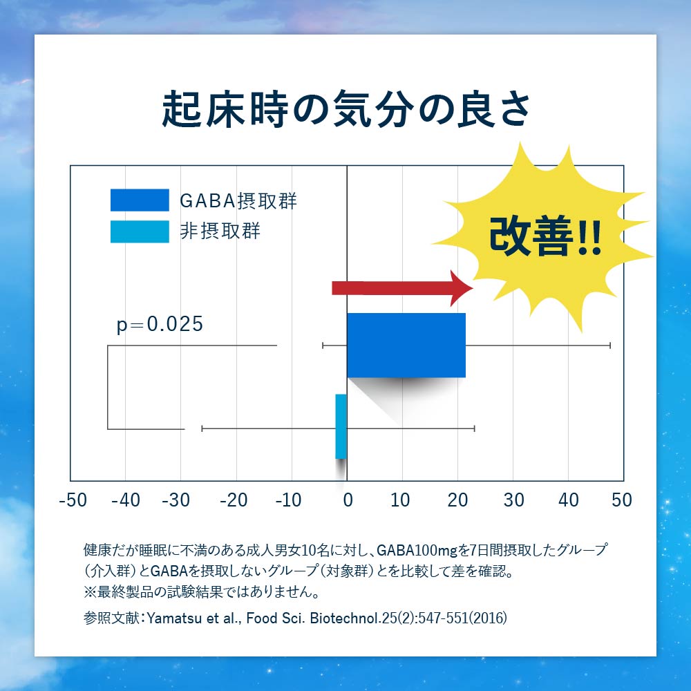 GABA has been reported to support sleep quality (depth of sleep and feeling refreshed upon waking) and help reduce temporary mental stress and fatigue.